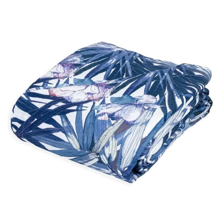 Trapuntato a capo, è rifinito a mano con due angoli sagomati. 2 piazze: 270×270 cm.