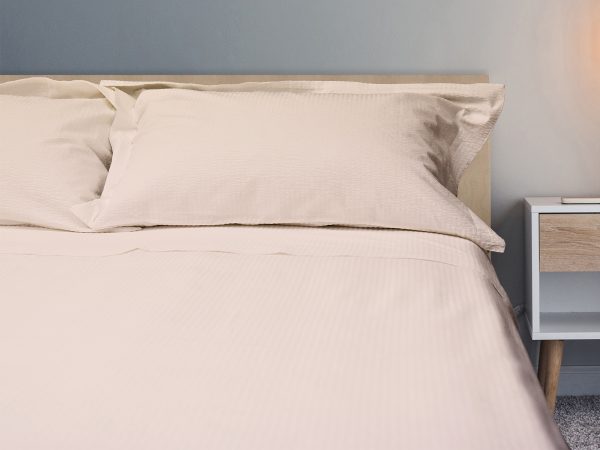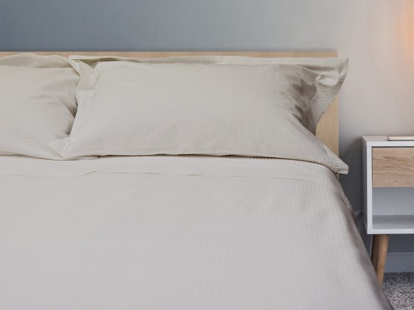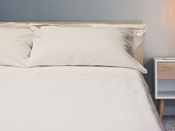 La parure è realizzato in puro cotone naturale e la trama goffrata ne esalta la caratteristica no stiro, vestendo il letto in modo contemporaneo ed elegante. La parure comprende il sacco e federa/e