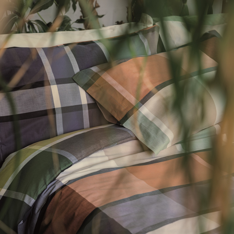 La parure lenzuolo Cassidy è realizzata in 100% cotone pettinato tinto in filo.