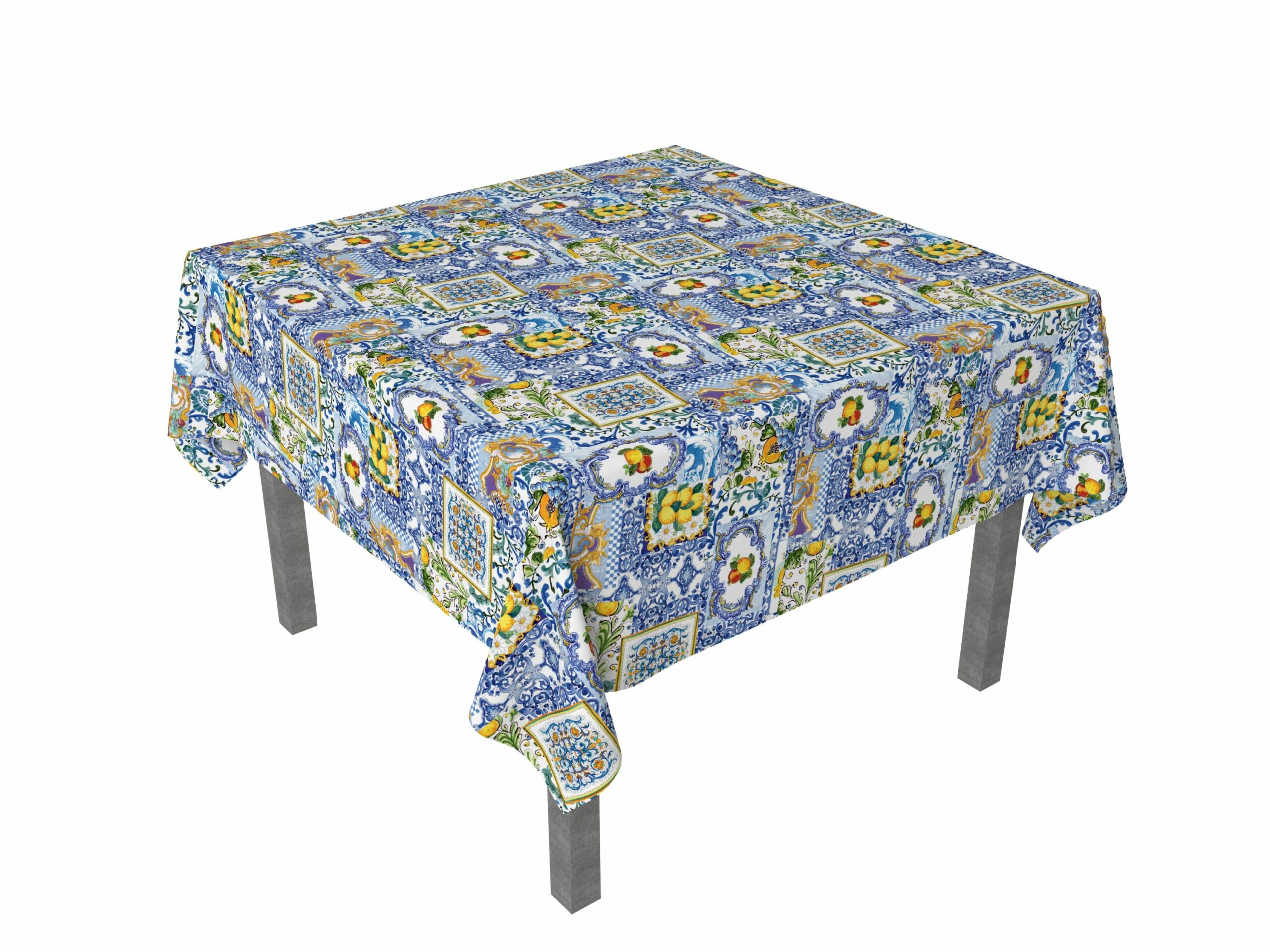 Raffigurate maioliche nei toni del blu,limoni,mirtilli,melograni
